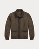 Fiber-dyed double-knit jacquard developed to achieve the marled look of tweed. Birdseye-inspired double-knit jacquard placket and pocket trim. Ribbed cuffs and hem. Corozo buttons.